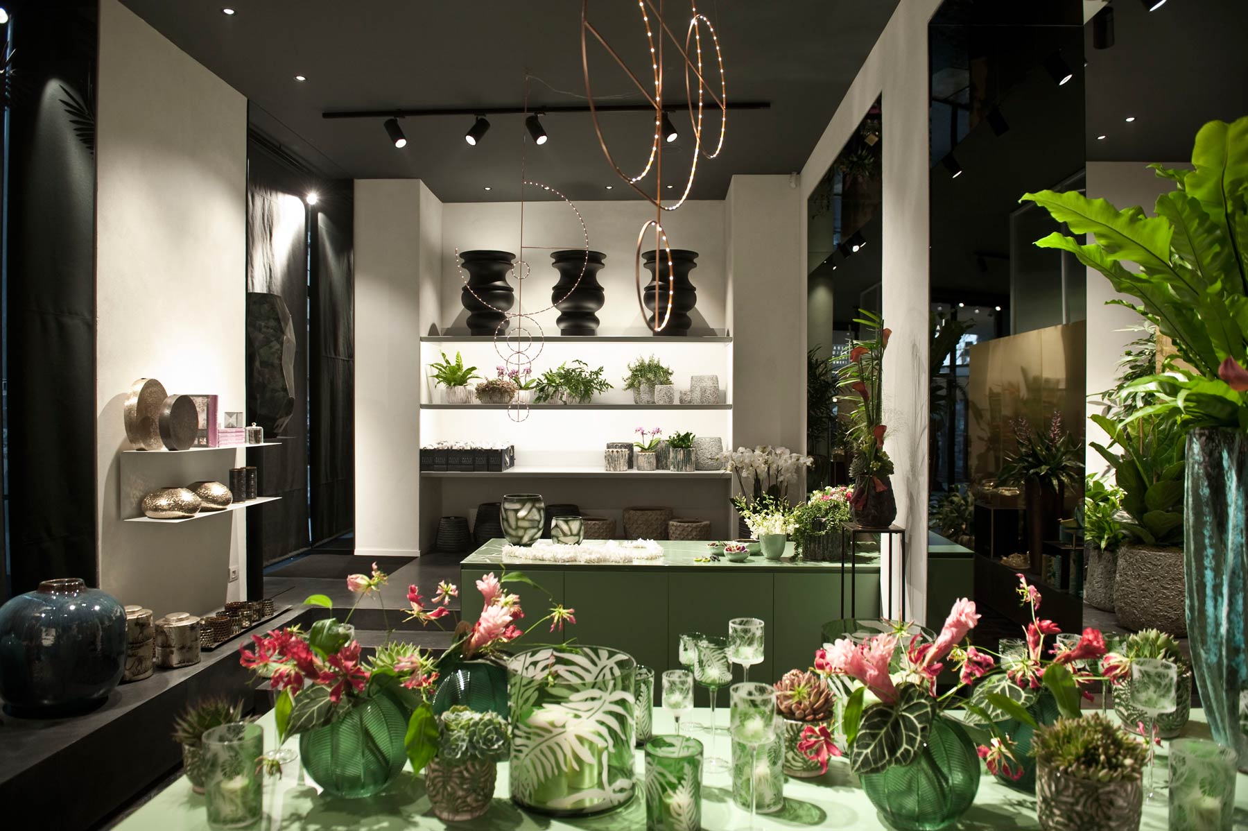 Uno spazio di tendenza dove i fiori con i loro magnifici colori e profumi convivono con oggetti di design italiani e