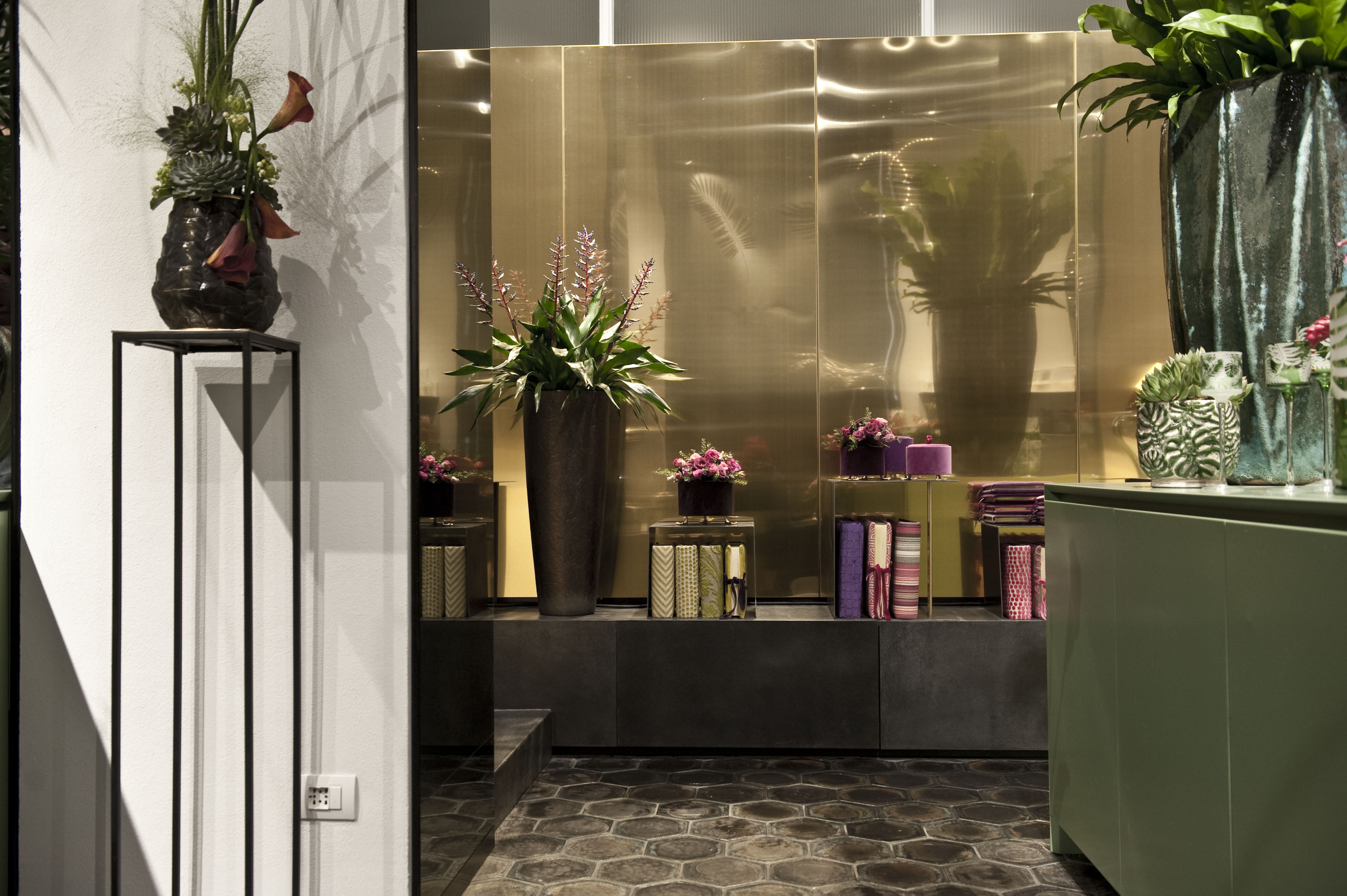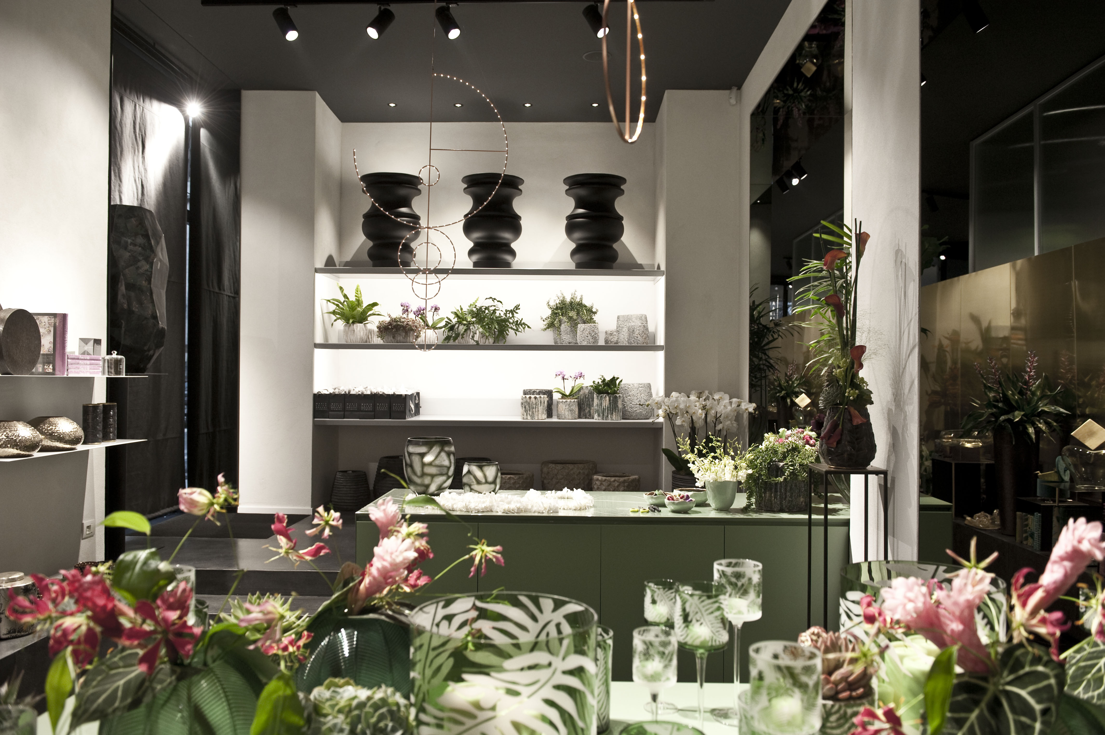 Uno spazio di tendenza dove i fiori con i loro magnifici colori e profumi convivono con oggetti di design italiani e
